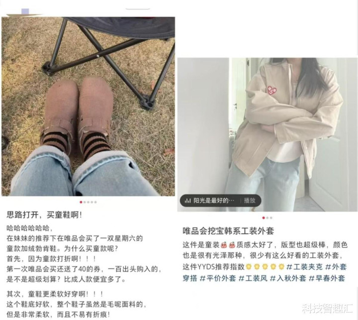 更有趣的是,不少刚出入社会的大学生,直接在唯品会上面学职场穿搭。“小小的老子想穿成精英去打工,直接上唯品会学职场穿搭,成熟风,关键是折扣还很大。”“抠搜的我在唯品会不到120元直接入手4件,性价比拉满。”“大二实习在唯品会学习职场风。”